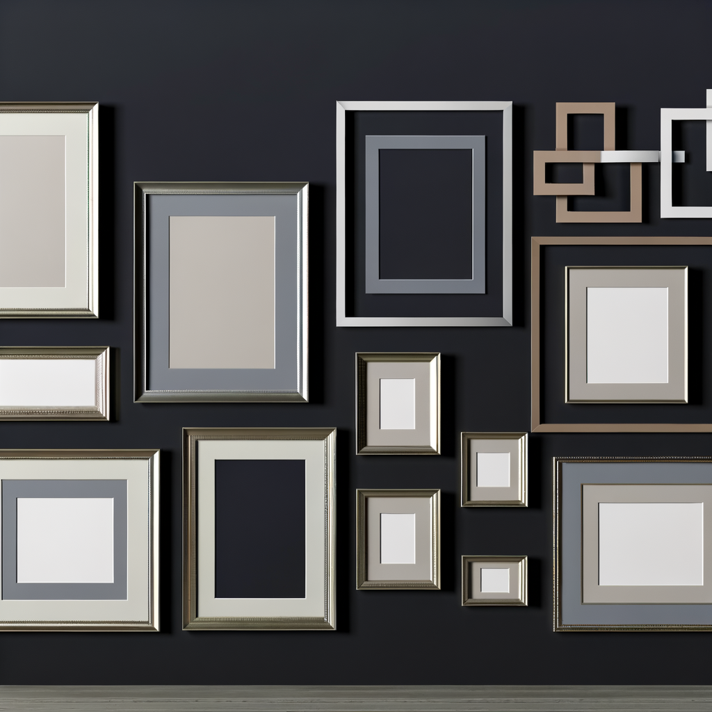 • Experimentar con diferentes combinaciones de marcos de cuadro y patrones para encontrar el efecto visual que mejor se adapte a la pared oscura y a la obra de arte o la fotografía que se está exhibiendo